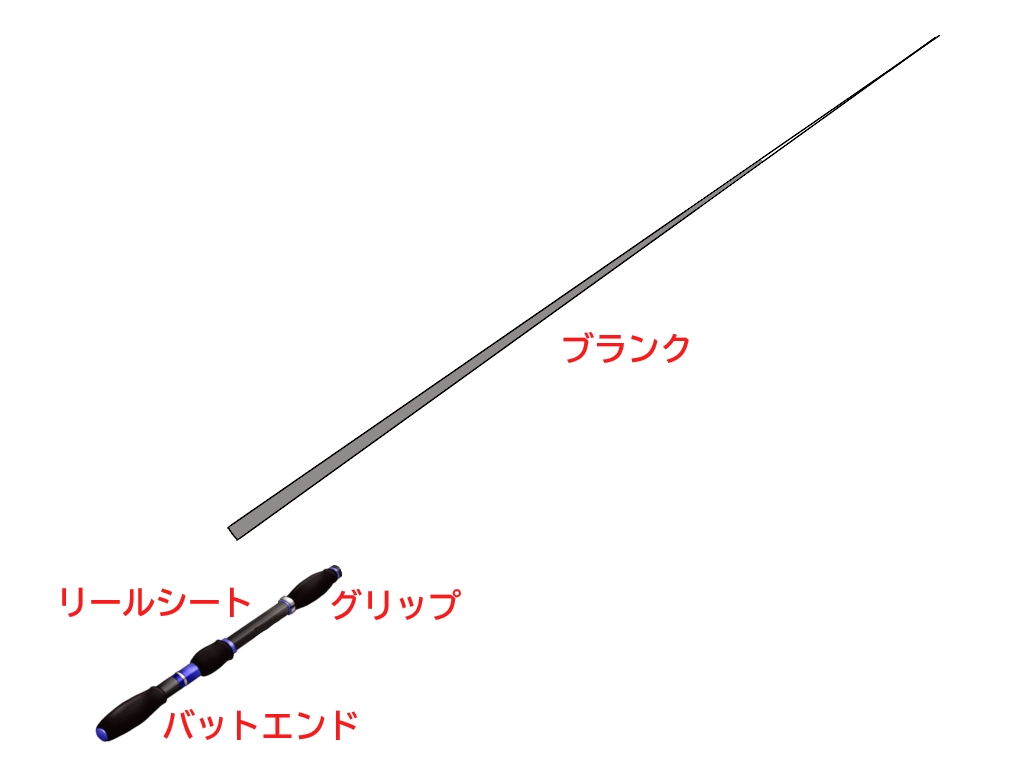 カーボン・グラス竿の本体の素材。竿のグリップの先から先端部分までの本体の部分で、ガイドも塗装もない状態の物を言う。竿の自作はまずブランクを手に入れ、これを塗装しガイドを付けグリップやリールシートを装着して完成する。